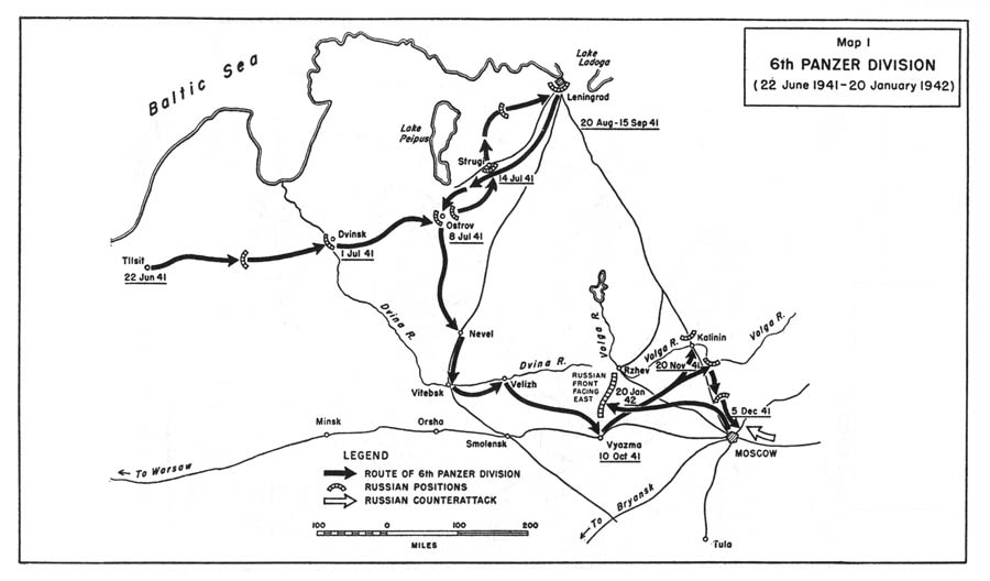Prior to Operation Barbarossa, the German invasion of the Soviet Union on 22nd June 1941, the training and the morale of the division was high. The 6th Panzer Division was attached to 41st Army Korps, 4th Panzergruppe, Army Group North at the start of the invasion and formed part of the spearhead that thrust towards Leningrad. The division reached the Luga River, the gateway to Leningrad, in just three weeks - a journey of some 500 miles (800 kilometres). The division was taken out of the line after breaching the Leningrad Line in September and ordered to join the attack on Moscow.